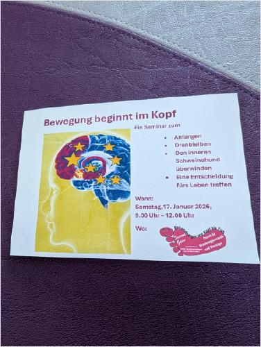 17.01.2026: Seminar: Bewegung beginnt im Kopf, Samstag, 17.01.26, 9.00 - 12.00 Uhr, 99,00 € |